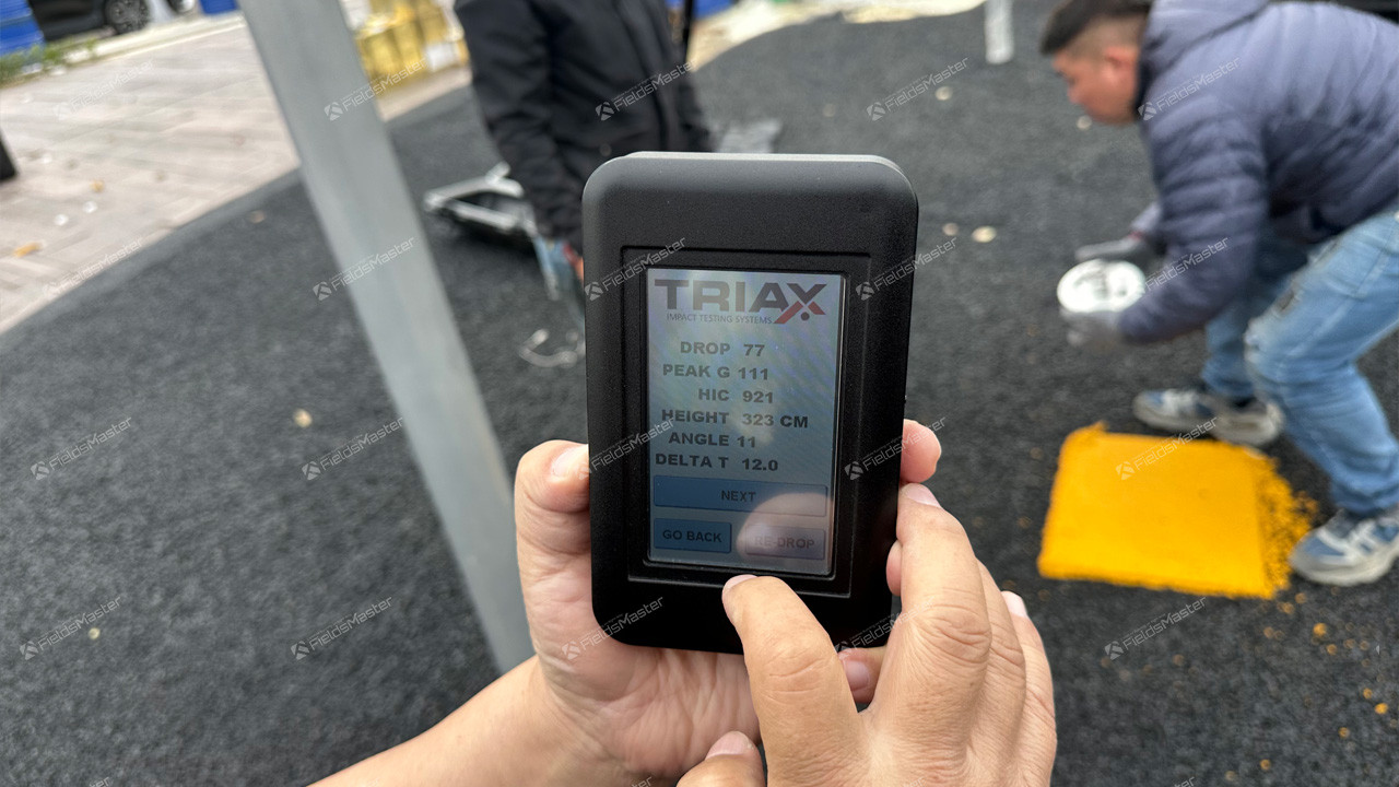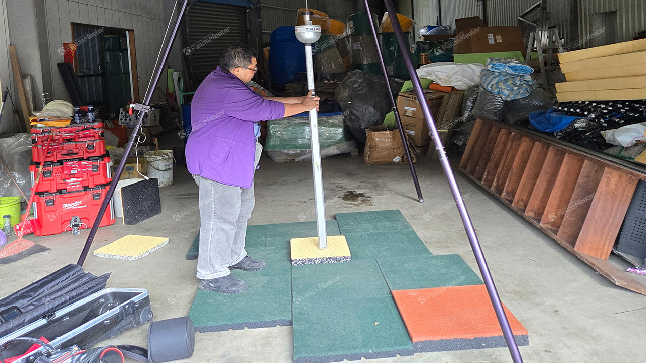 Jack Wu conducting professional HIC (Head Injury Criterion) testing in Taiwan to ensure the superior safety and impact attenuation of FieldsMaster surfacing solutions.