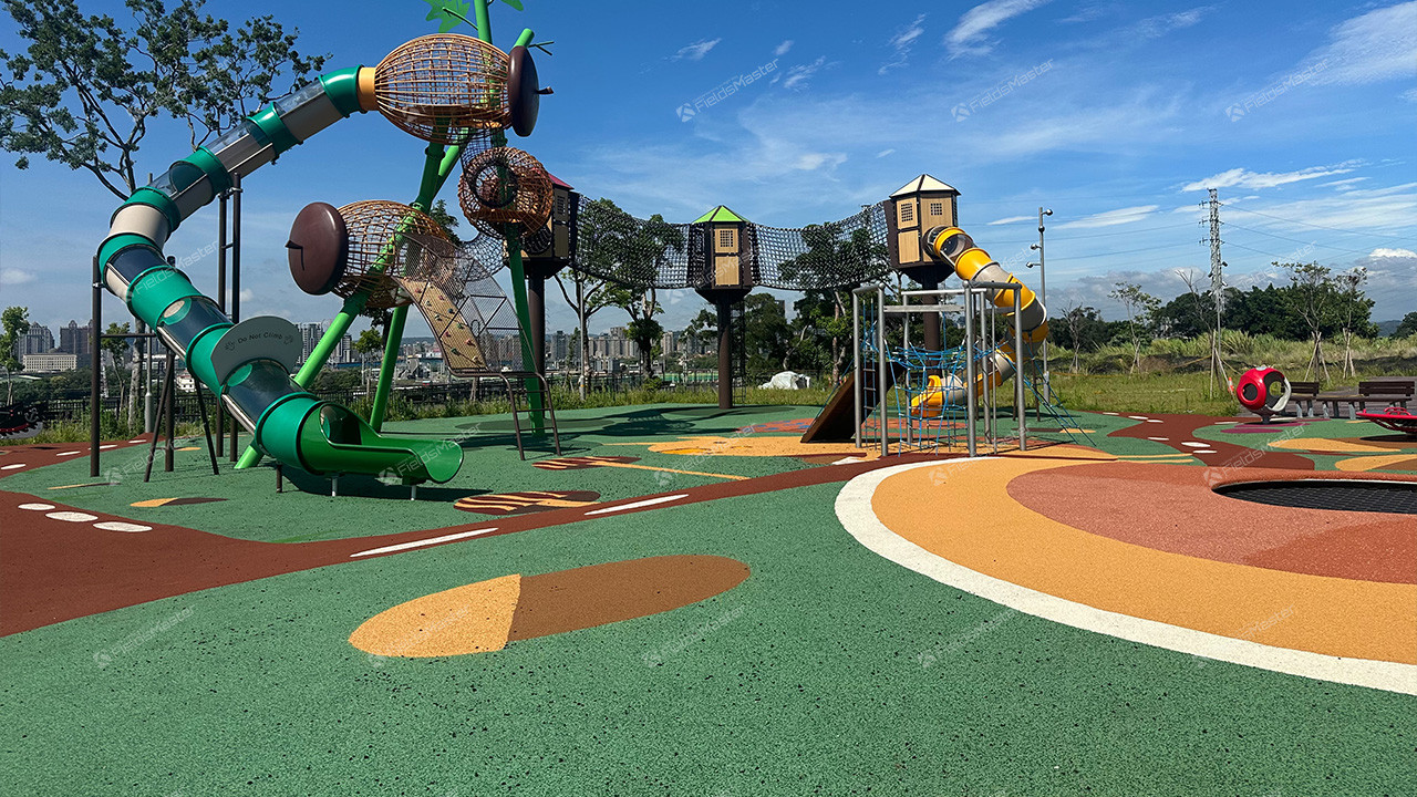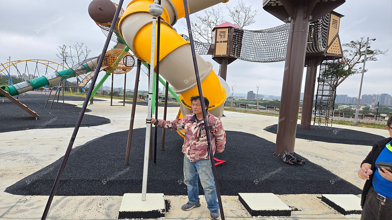 After confirming the performance of our projects, Jack ordered binder samples and conducted professional HIC testing in Taiwan to ensure the safety of the EPDM flooring. He told me that playgrounds are never just business to him. They are spaces where children run, fall, laugh, and grow. That is why he treats material selection, testing accuracy, and every construction detail regarding the EPDM granules with exceptional seriousness.