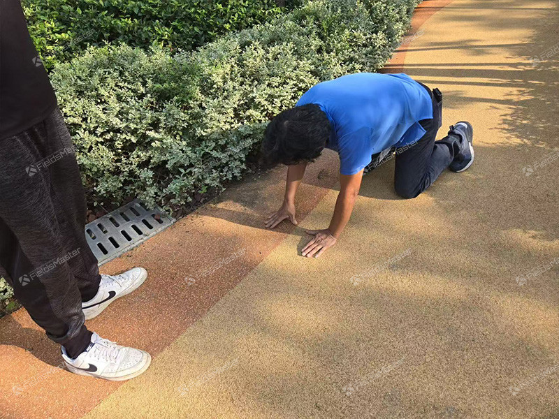 In March 2025, Jack placed his first official order. He chose FieldsMaster's highest-grade Pro EPDM granules combined with our Aliphatic Binder system. Taiwan's climate presents challenges. During early construction, adjustments were required regarding curing time and catalyst ratios under lower temperatures.